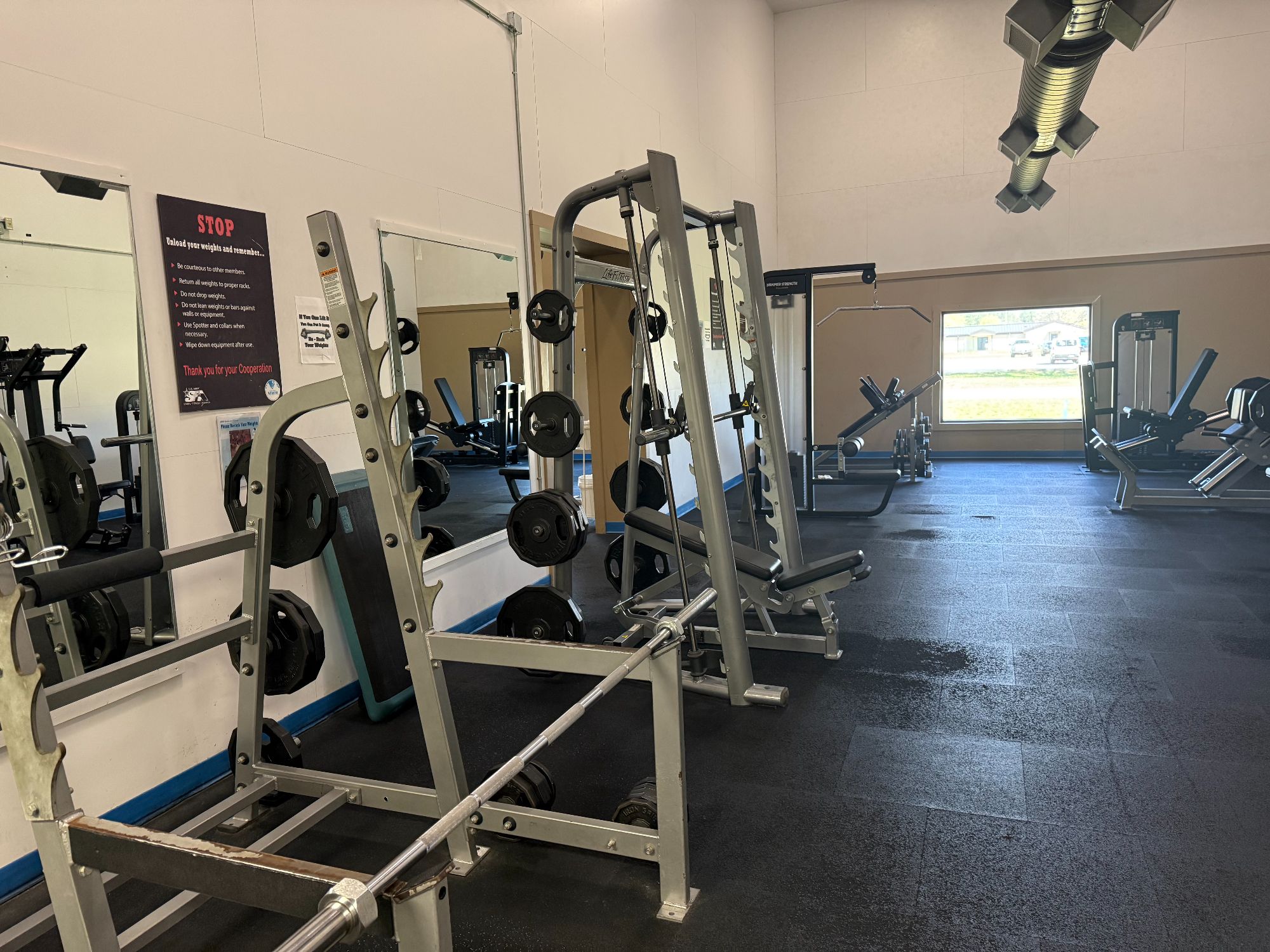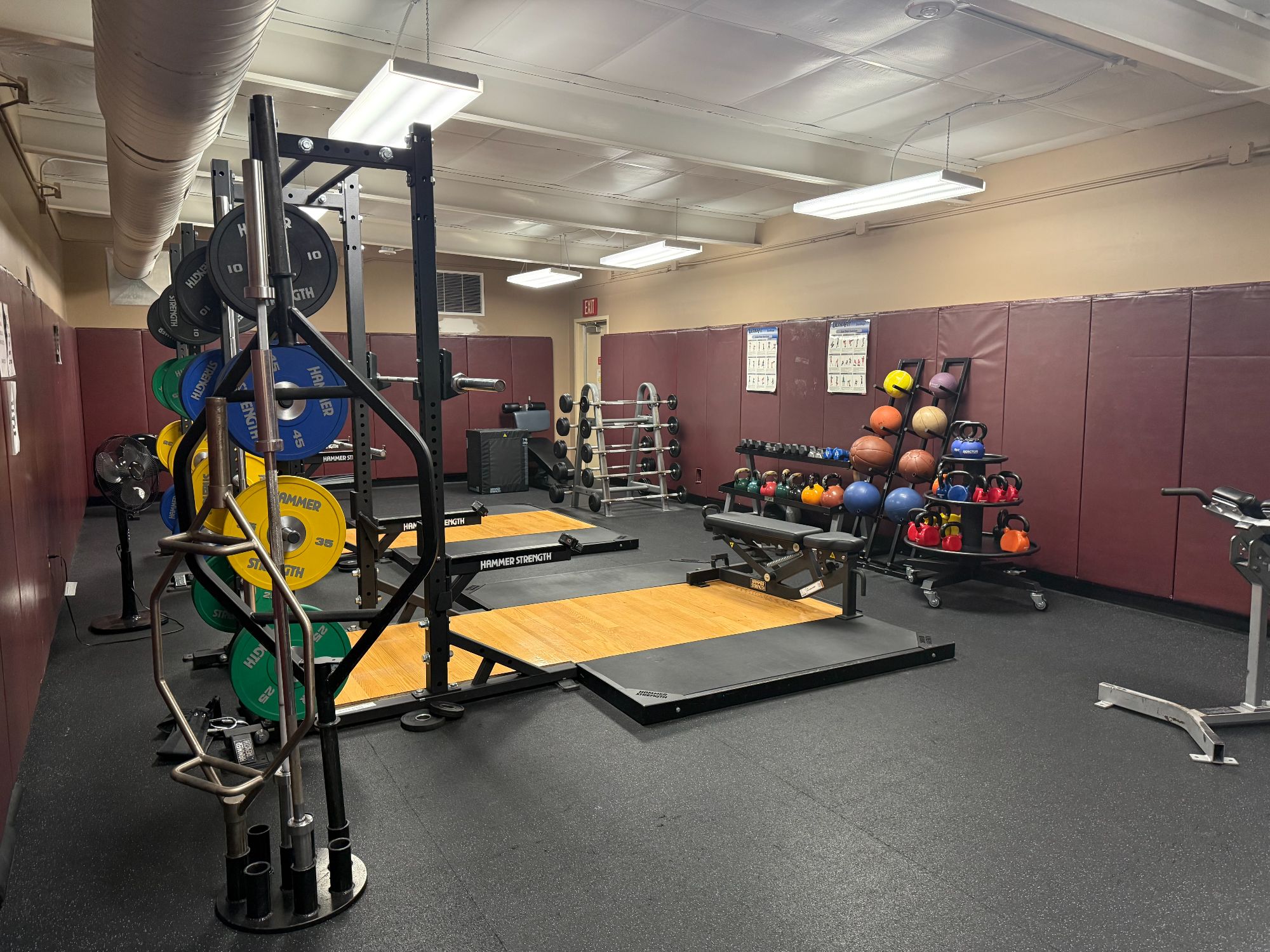 - Cardio and Strength Equipment Area: Access state-of-the-art equipment for both cardio and strength training with Treadmills, Elliptical, Bikes, etc., Selectorized machines, Plate loaded machines, Power Racks with platforms, Cable machines, and a large variety of free weight equipment and benches.